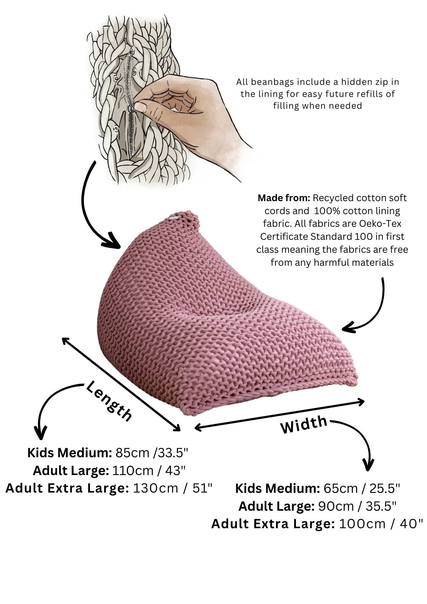 Knitted Bean Bag Chair For Adults Teens And Kids With Filling Jessica Lee Design
